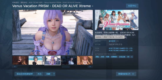 光荣特库摩旗下经典格斗游戏《死或生》衍生沉浸式恋爱模拟游戏《死或生:维纳斯璀璨假期》现已正式发售!国区售价298元,支持简体中文!