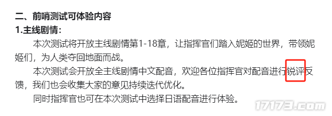 好在官方态度诚恳,国服发行负责人小A在公开信中,鼓励玩家在前哨测试时,对配音等方面大胆提意见。