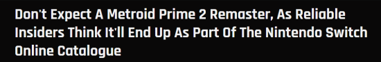 知名业内爆料人Jeff Grubb在推特上透露,他认为任天堂可能将《银河战士Prime 2》作为GameCube平台的一部分,加入Nintendo Switch Online服务,让订阅用户可以直接游玩,而非推出复刻版本。