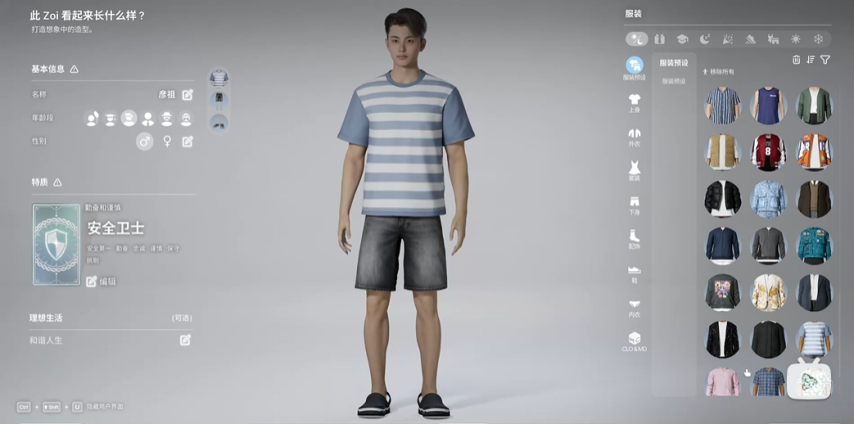 首先在捏人时,衣服和妆容选项很多,许多都能自定义细节颜色,身体的胸、屁股,以及肌肉量,全都可以自由调整。据说玩家可以对ZOI的头发、皮肤、体型、服装、配饰、美甲造型等诸多方面的250多个细节进行自定义调整。