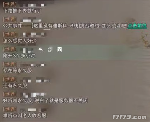 原本游戏内的世界频道聊天几乎不间断,但现在基本是几个玩家包圆了聊天频道。