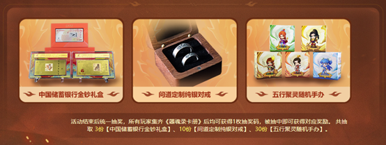 玩家通过抽卡、互相赠予集齐《器魂录卡册》这30张卡片后,即可获得自己的抽奖码,并领取集卡奖励,集卡奖励先到先得领完即止!30