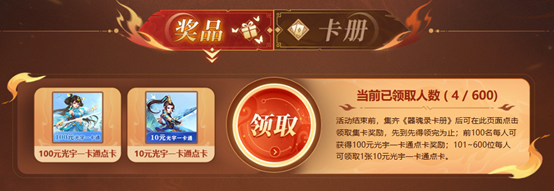 也就是说只有完成集齐卡册的前600名玩家,有以上光宇一卡通点卡奖励!竞速集卡冲冲冲!600
