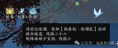 提示会明确说明出现的线路和当前的任务,仙友们去参与对应的活动即可。