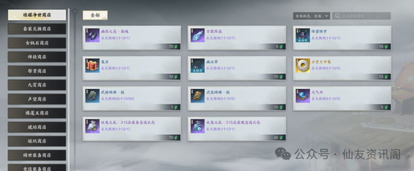 优先315品装备自选礼包,其次万载寒晶,再就是云赏点。