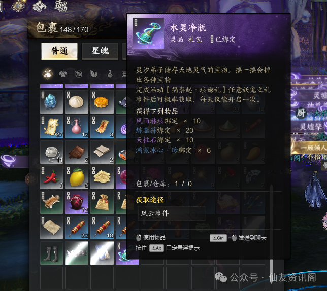 (水灵净瓶获取是完成活动风云事件概率获取)