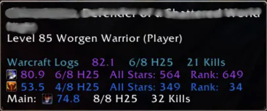 大家好,我是苹果牛。Archon(执政官)网站上线了一款全新插件Archon Tooltip Addon,可以一键看到玩家的团本进度、击杀次数和WCL评分,对于还在开荒史诗团本的团长来说绝对是雪中送炭了!大家好,我是苹果牛。Archon(执政官)网站上线了一款全新插件Archon Tooltip Addon,可以一键看到玩家的团本进度、击杀次数和WCL评分,对于还在开荒史诗团本的团长来说绝对是雪中送炭了!