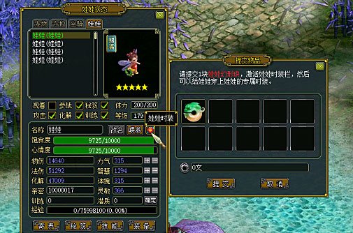 在娃娃状态界面可以使用娃娃幻形玦激活娃娃时装功能。在刷道触发任务中有机会获得娃娃幻形玦。娃娃时装不定期在商城的稀有时装中出售,娃娃时装只能给娃娃使用。