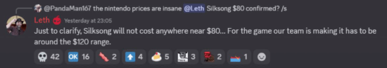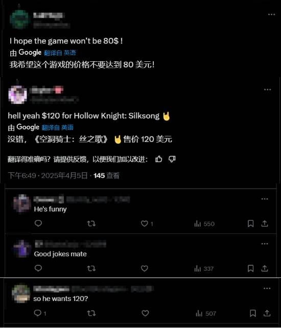显然玩家们都把后半句当做玩笑话,Leth应该是在玩梗《赛博朋克2077》的“定价乌龙”。不过大家还是纷纷表示,希望《丝之歌》的定价不要太贵!