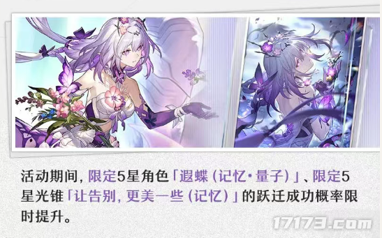 本期上半卡池会有限定5星角色遐蝶,复刻角色则包括了忘归人、黄泉、椒丘。本期上半卡池会有限定5星角色遐蝶,复刻角色则包括了忘归人、黄泉、椒丘。