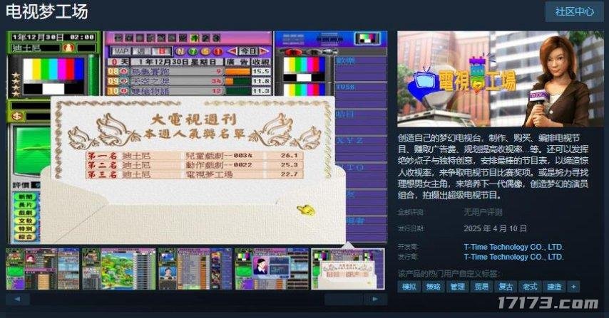 光谱资讯《电视梦工场》Steam页面开放,2025年4月10日发售,游戏支持简繁体中文。光谱资讯《电视梦工场》Steam页面开放,2025年4月10日发售,游戏支持简繁体中文。