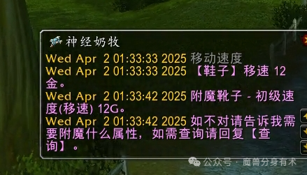 90%的魔兽玩家都吃过这个亏,我们都知道60版本和70版本,由于没有铭文这个专业,因此我们想附魔的话在拍卖行是,没有找到附魔卷轴给自己附魔的,这个时候在60版本和70版本,就会出现一些,站主城附魔的玩家,关键的是同一个移动速度的一个附魔,比如说我问的这个人,他要25金,然后我问别人只要12金,所以说附魔现在这个东西,差价特别的大,我们可以多问几个,这样可以帮我们省下大量的金币。