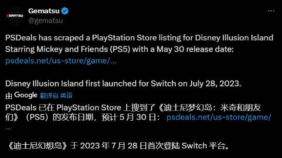而据PS游戏价格追踪网站PSDeals上发布的一份列表显示,《迪士尼奇幻岛》将于5月30日登陆PS5。