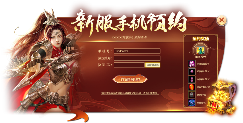 此次新服,《战神传奇》5大预约,海量福利等你来拿!进入官网参与新服手机预约,即可轻松领取豪华进坐骑,还能解锁超值强化礼包!让您的新服之征无忧,冲榜战神第一指日可待!
