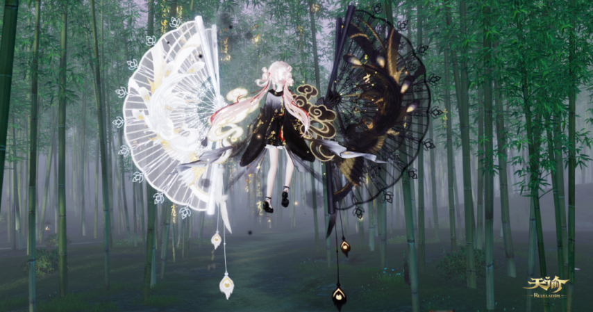 全新概念翅膀打破你的常规想象,四柄黑白折扇凌空化翼!扇骨处鎏金祥云流转生辉,将东方美学推至全新境界~