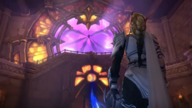 奥蕾莉亚在修道院内与萨拉塔斯对峙,她射出一支精准的箭矢,正中黑暗之心。一只饱受摧残的渡鸦(卡德加)从这件暗影神器中泄漏的能量中凝聚而出,先驱者逃之夭夭。卡德加蜕变回人形,艾泽拉斯的英雄们重新集结,继续追击萨拉塔斯和黑暗之心。