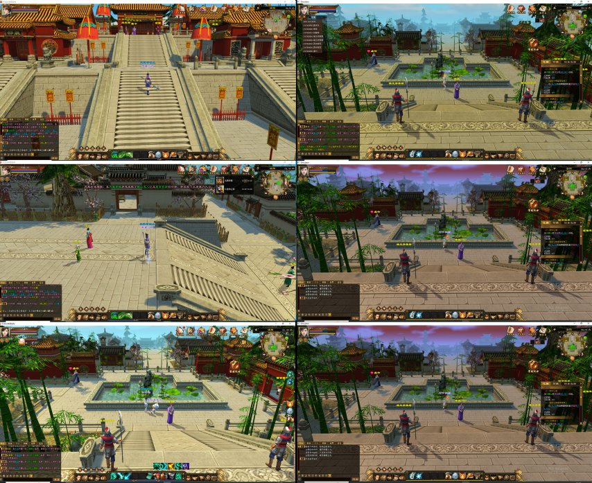 相比上测明亮的风格,我们这次重点升级了游戏画面的整体饱和度,让山水建筑更贴近天龙江湖的真实质感。现在雁门关的落日余晖、大理城的青砖黛瓦,相信都能给到大侠们回归老天龙的视觉体验!优化后的画面视觉上更加柔和沉稳,重新带回大侠们回到曾经战斗的既视感。整体饱和度天龙江湖的真实质感雁门关的落日余晖大理城的青砖黛瓦回归老天龙柔和沉稳曾经战斗的既视感