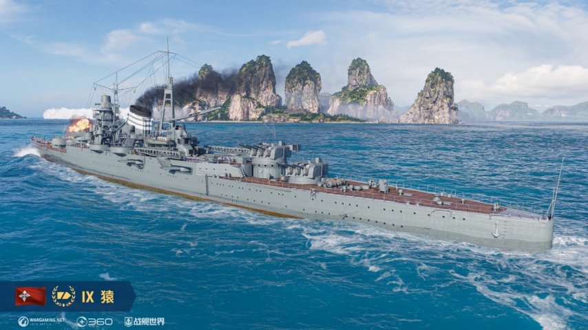 舰长们可以通过黑达摩高级补给箱来获得猿和瓦尔帕莱索,也可以在军械库中直接通过海军上将礼包来招募它们。猿是一艘拥有强大火炮输出能力的巡洋舰,主炮装填助推器消耗品能够进一步放大其火力优势。不过由于炮塔旋转速度较慢,在对局中找到一个合适的输出角度是最关键的。