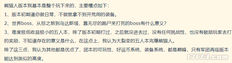 所以,在大多数国服玩家的心目中,《熊猫人之谜》这个版本的综合口碑相当不错,甚至可以说是接近神作了。