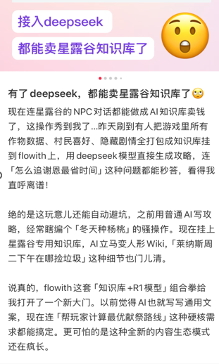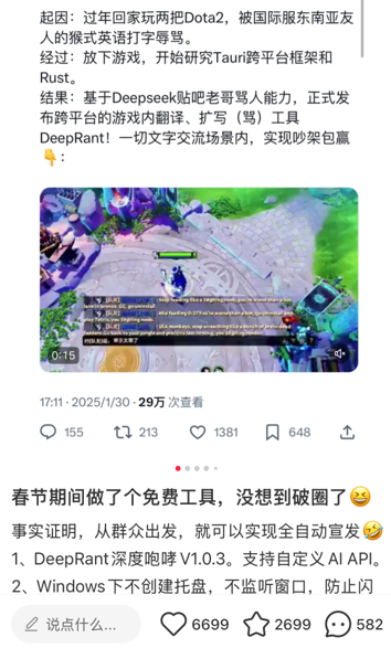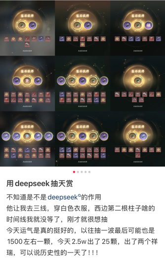 而各大厂商的一线打工人们,早就在实际工作中多多少少利用到了Deepseek,你能看到的游戏,或多或少都有着Deepseek的助力。