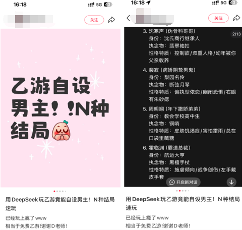 最常见的,就是利用Deepseek强大的文字能力,来玩文字互动游戏,包括但不限于狼人杀、乙游、跑团等等,实现文本向的“游戏自由”。Deepseek“”