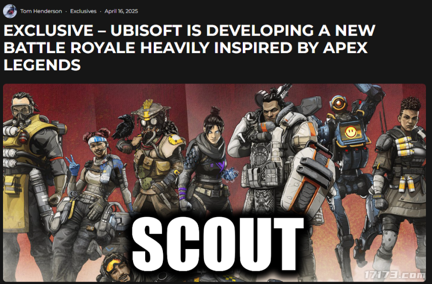 据外媒报道,育碧目前正在开发一款深受《Apex英雄》启发的新大逃杀游戏。