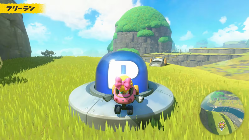 另外还有自由模式则可以自由驾驶在各个场景下,同时这个模式有一些可以锻炼技术的P按钮,也有一些特别的收集要素,也可以用来作为拍照模式。赛道上还有耀西餐车,吃下随机的食物后可以让角色变身,解锁新的外观。P