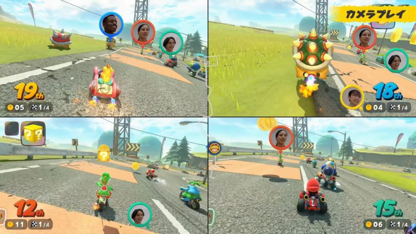 在对战方面,线下对战支持最高 4 人,近距离联机最高8人、在线则是24人。另外在联机上,也支持这次的 Switch2 摄影机,可以队伍聊天,以及观看其他玩家的画面,线下时最多可以捕捉4名玩家的脸。 4 824 Switch2 4
