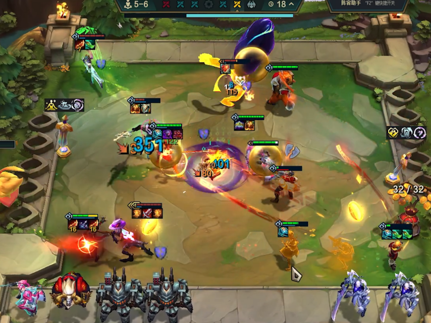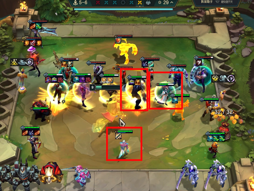 兔子这局为什么到5-5就无敌了,你要对这个阵容有一些思考,首先你看我层数到这一回合我叠到32了,我的安妮厄菲琉斯佛爷全部都是两星的,这个时候你就别想着螃蟹沙弥拉什么的事,特别是刚锁血的时候血很宝贵,那些东西是上限,你福牛的高增伤肯定是在福牛体系内的