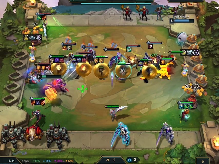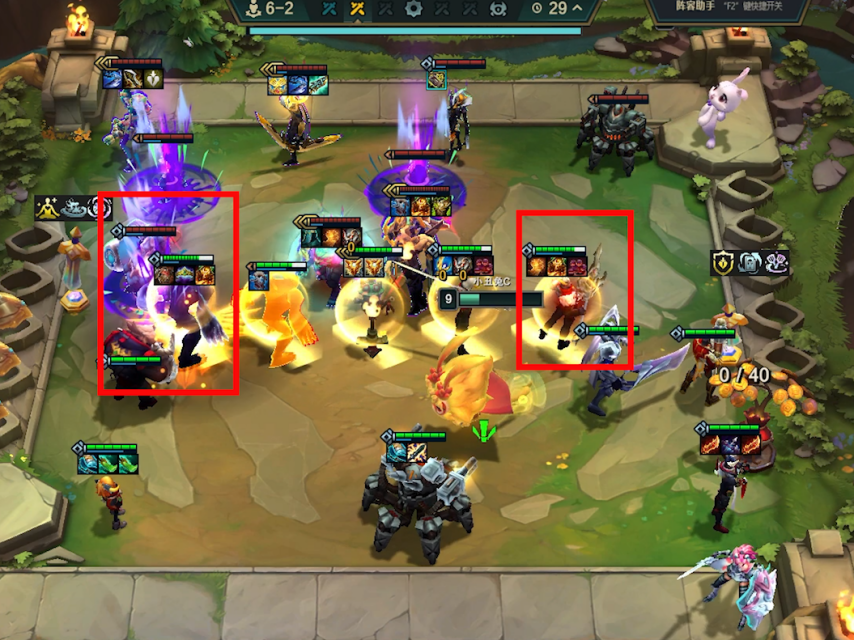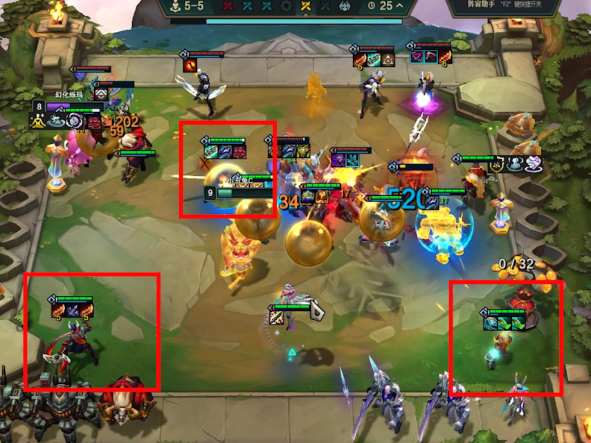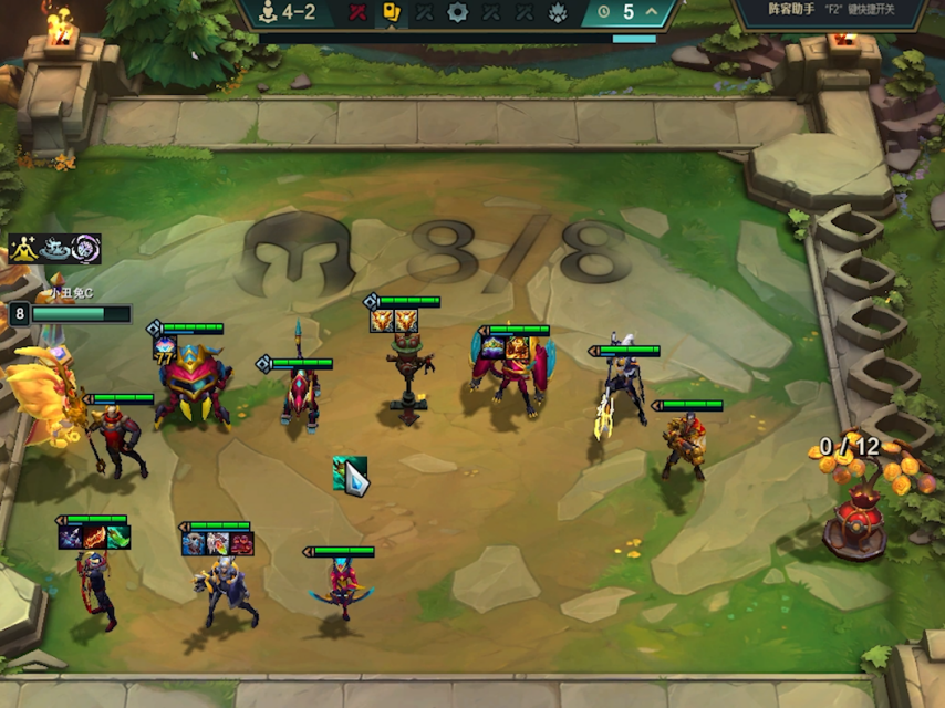 最后就是一定要防刺客的对位,小丑狮子狗直接反着站,劫你实在不会对就站中间,把沙米拉或者是螃蟹扔两边,前排最左边和最右边都放一个坦克,瞎蒙你都能多赢两局