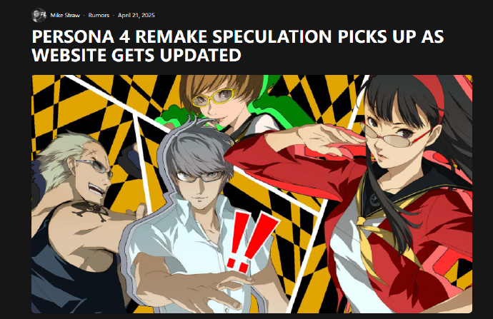 今年3月20日,有玩家发现了《女神异闻录》系列开发商Atlus疑似注册了名为“p4re.jp”的域名,据外媒报道,这个域名在4月21日迎来了一次更新,外界普遍猜测《女神异闻录4 重制版》有望在6月初公布。