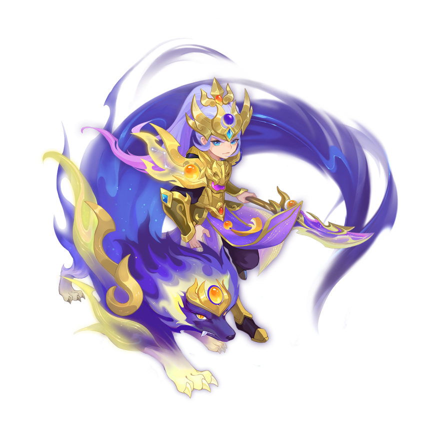 啸月真君本就是颜值很高的宠物,换上这件天衣后更是帅上加帅。为了呼应星辰主题,旁边的狼犬也变成了紫色,而真君本人的盔甲则是紫、金色交映的新奇搭配,看上去简直就像黄金圣斗士一样威猛。