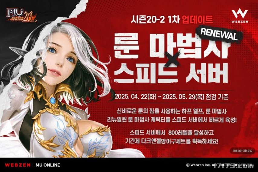网禅旗下的韩服《奇迹MU》将进行符文法师职业的重制,并同步开放极速服务器。