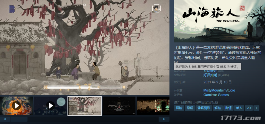 本次过审的版号中,还有一款非常经典的国风2D妖怪类冒险解谜游戏《山海旅人》,这款游戏在2021年登陆Steam的时候,就因独特的风格和优秀的故事引来了不少关注,目前在Steam上拥有96%的好评如潮,是非常经典的国风独立游戏。本次过审的版号中,还有一款非常经典的国风2D妖怪类冒险解谜游戏《山海旅人》,这款游戏在2021年登陆Steam的时候,就因独特的风格和优秀的故事引来了不少关注,目前在Steam上拥有96%的好评如潮,是非常经典的国风独立游戏。