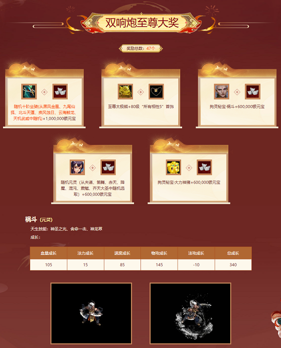 全区特别排行奖各第一名奖励全部为随机元灵一只!随机元灵