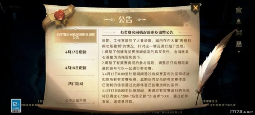 4月22日的凌晨时分,《哈利波特:魔法觉醒》官方忽然发了一则通告,大意是说,“有奖赛”活动接到大量玩家举报,有玩家恶意利用功能盈利,因此以前可用氪金的游戏币星石购买的活动资格,改成现实货币。此外利用过这功能的玩家,都会被扣除有奖赛所得,而没利用过这个功能的玩家赠送一些宝石和游戏币。