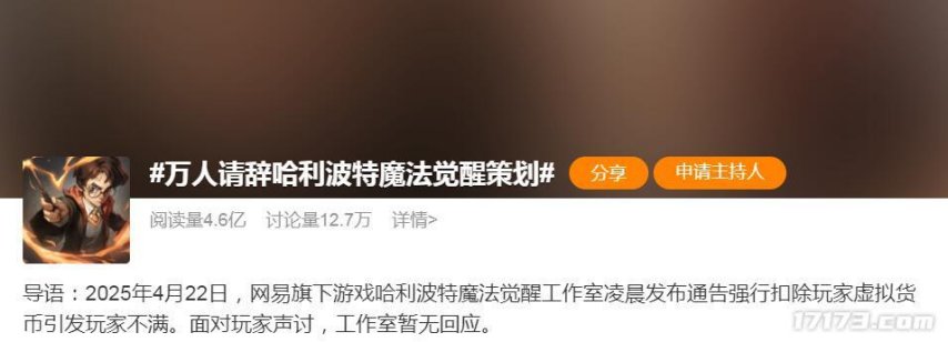 网易旗下的《哈利波特:魔法觉醒》,近日忽然上了热搜,不过不是因为游戏发了什么大福利,而是被玩家骂上热搜的,“请辞游戏策划”的话题热度到了4.6亿。网易旗下的《哈利波特:魔法觉醒》,近日忽然上了热搜,不过不是因为游戏发了什么大福利,而是被玩家骂上热搜的,“请辞游戏策划”的话题热度到了4.6亿。