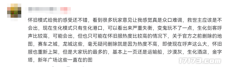 但实际体验下来,玩家却对怀旧模式看法不一,有人为怀旧模式没有把之前老地图都端上来感到遗憾。