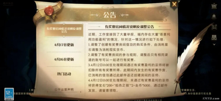 4月22日,《哈利波特:魔法觉醒》官方忽然发了一则通告,大意是说,有奖赛活动接到大量玩家举报,有玩家恶意利用功能盈利,因此以前可用氪金的游戏币星石购买的活动资格,改成现实货币。