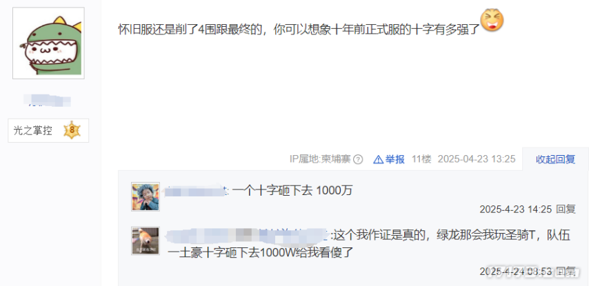 根据一些老玩家的回忆,当年的十字军比现在都猛,一个十字砸下去能打出1000W伤害。