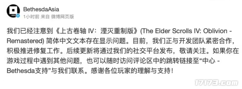 好在B社官方也发现了这个问题,正在与开发团队进行合作,积极推动这个中文文本的修复问题。