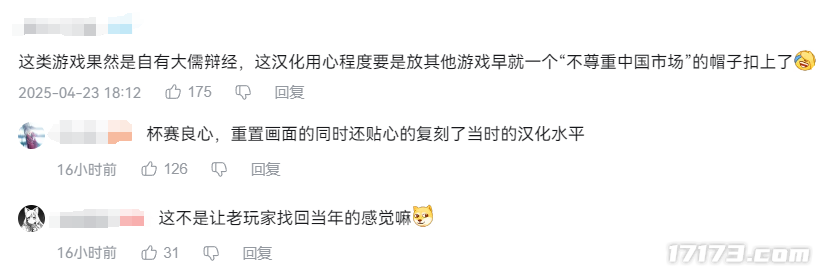 对此,有不少人都在调侃:“杯赛良心,重置画面的同时还贴心复刻了当时的汉化水平”。
