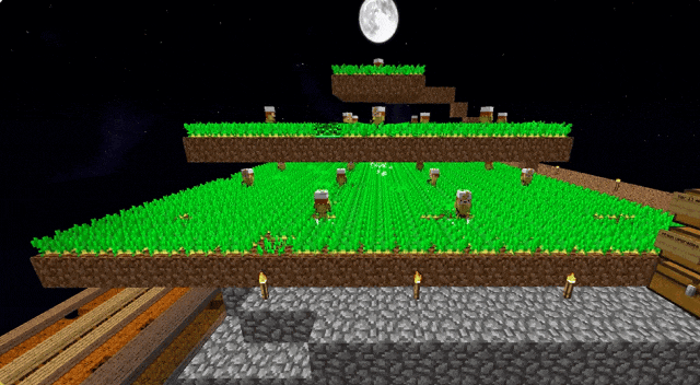比如在空岛生存地图里,玩家出生在一块小小的空岛上,你需要利用有限的资源来造桥,从而抵达另一个岛屿,那上面有通往多人联机世界的传送门。