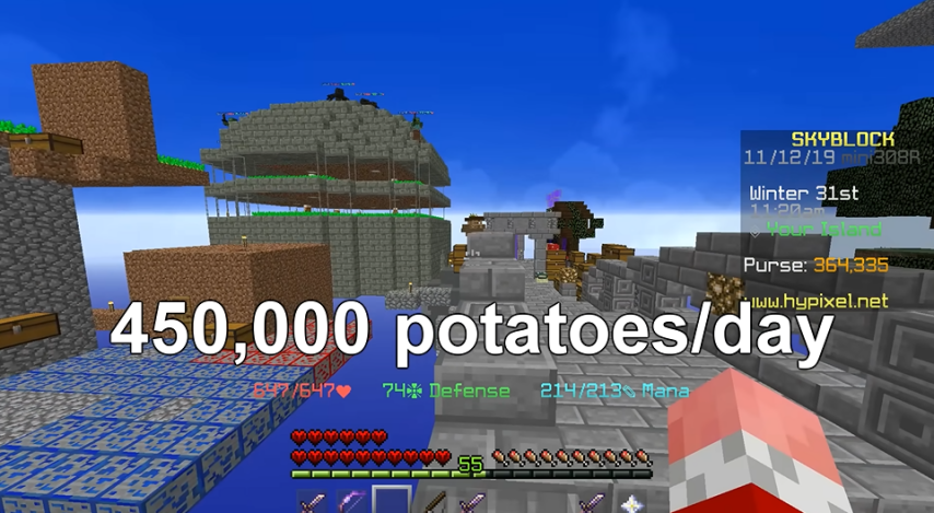 而他,大名鼎鼎的现任土豆大王,早已抢先花10个小时建造了占地21000个方块的巨大手工土豆农场,还借了朋友的传奇武器“死神镰刀”,就为了耕地的时候能加一点速度。