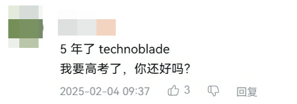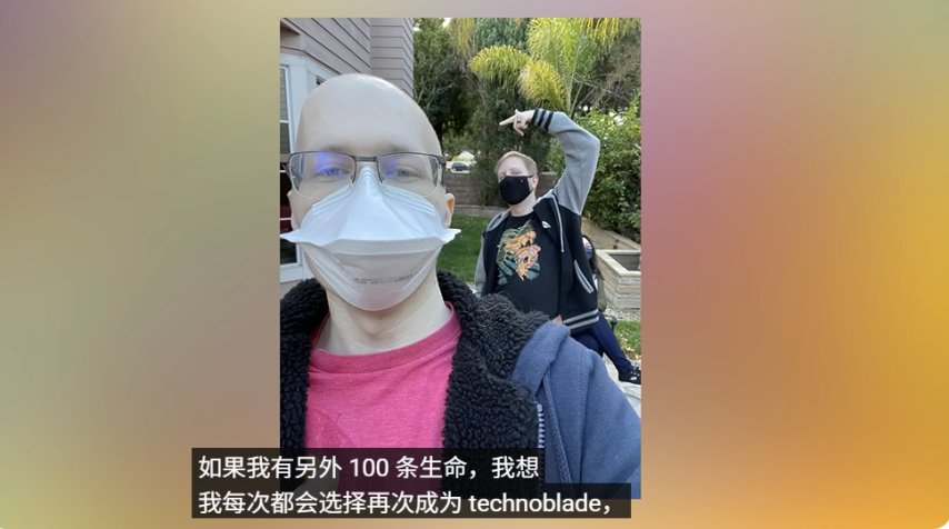 “我希望你们喜欢我的内容,也希望我让你们中的一些人开怀大笑。我希望你们都能长寿富贵、幸福美满,因为我爱你们。Technoblade 出击!”“我希望你们喜欢我的内容,也希望我让你们中的一些人开怀大笑。我希望你们都能长寿富贵、幸福美满,因为我爱你们。Technoblade 出击!”