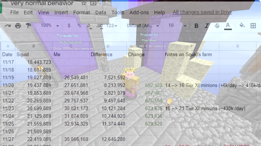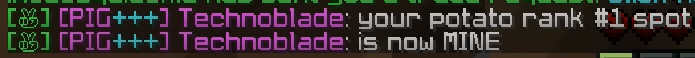 就这样悄咪咪地明修栈道暗度陈仓,白天种土豆,晚上监视Squid,闲下来了就大号小号一起去Squid家挂机。终于有一天Techno成了全服第一土豆农民,而Squid甚至全程被蒙在鼓里。