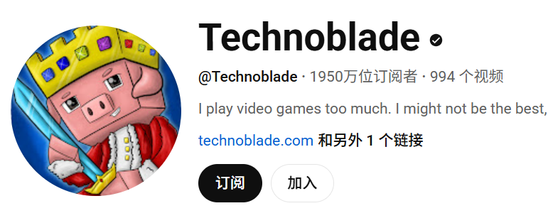 Technoblade在2013年注册了这个油管账号,主要用来分享《我的世界》游戏视频。