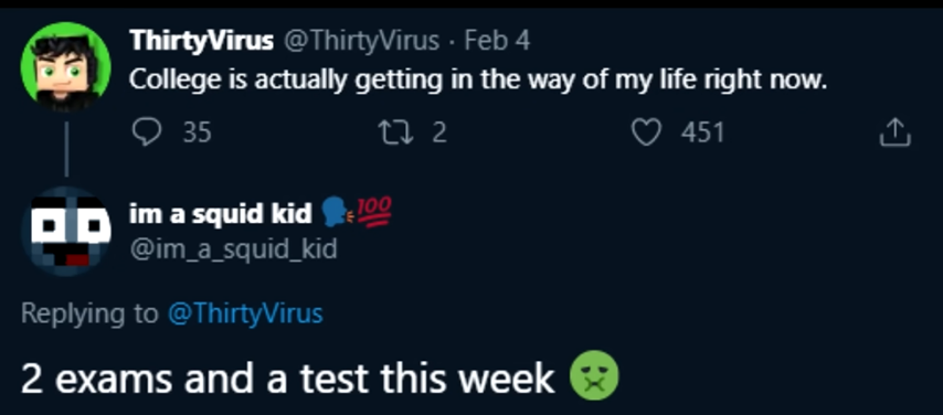 squid说这周有两个考试和一个小测