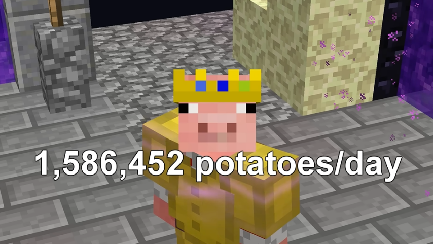 因为假如继续这样相互battle下去,Techno和Squid恐怕要被土豆硬控一辈子,于是俩人达成协议——谁先种出5亿个土豆谁就获胜。这事当时还惊动了官方,承诺会给赢家发放奖励。