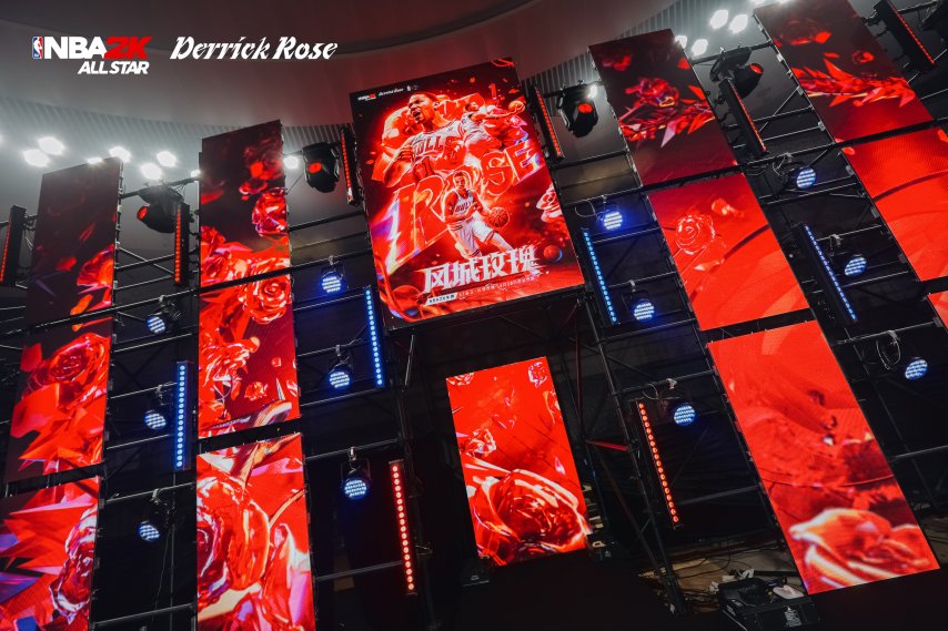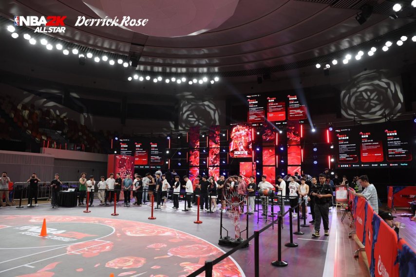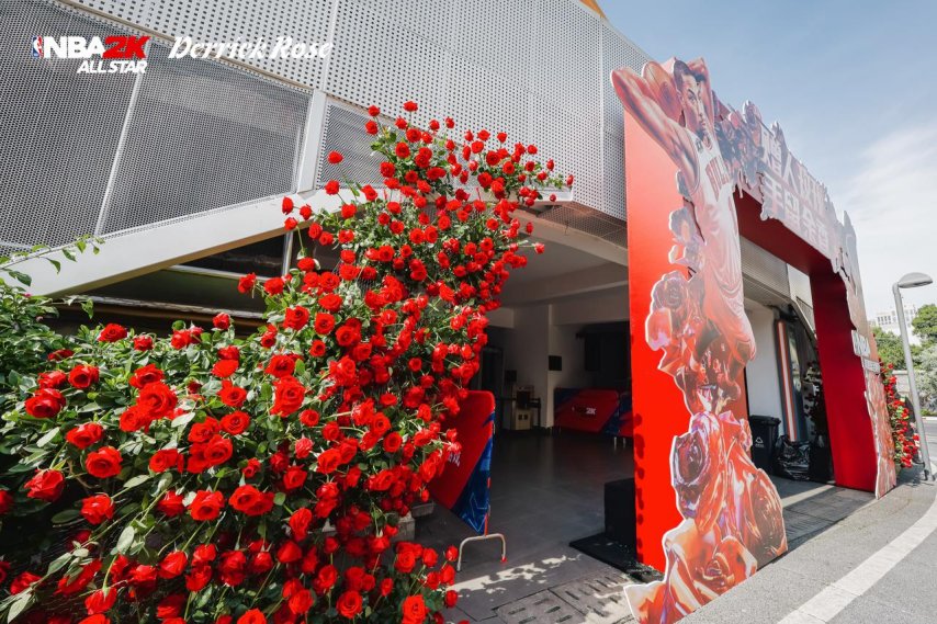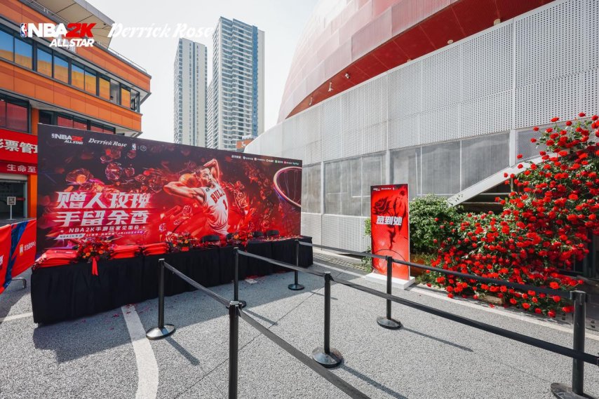 每一处装饰品、每一份活动道具的摆放都凸显用心,尤其是场馆内那副布满玫瑰花的篮球架。玫瑰元素从场馆外“蔓延”至场馆内,这不仅体现了游戏官方对“风城玫瑰”罗斯的了解与尊重,也表明了他们是在用心为玩家营造一次体验极佳的线下活动。